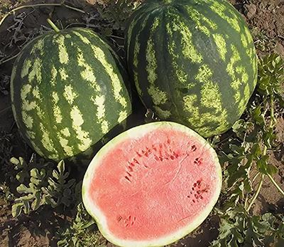 Среднепоздний столовый сорт с крупными и вкусными плодами. Первый сбор через 92-105 дней после всходов. Растение средней мощности с длиной главной плети до 2 м. Стебель с редким опушением, листья узкие, сильно рассеченные. Плод шаровидный, гладкий, массой 4,3-5 кг. Кора светло-зеленая с темными слабошипыми полосами. Мякоть розовая, зернистая, сочная, сладкая. Проверенный и надежный сорт отличается транспортабельностью, устойчивостью к засухе и мучнистой росе.