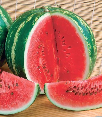 Артикул: 107720 Раннеспелый (от всходов до созревания плодов 70-80 дней) сорт. Растение плетистое, сильноветвистое. Плоды округлые, слабосегментированные, зеленые с широкими темно-зелеными полосами, массой 3-6 кг. Кора толстая, плотная. Мякоть красная, сочная, зернистая, нежная, сладкая.