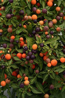 Среднеранний (100-115 дней) необычайно красивый, обильно плодоносящий сорт для выращивания на клумбах, садовых бордюрах, в теплицах, цветниках, зимних садах, на балконах и подоконниках. Растение компактное, хорошо облиственное, высотой 20-25 см. Плоды многочисленные, мелкие, округлые, направлены вверх, с букетным расположением, диаметром до 1,5 см. Цвет от темно-фиолетового в технической спелости, по мере созревания лимонно-желтые и биологической ярко-красные. Все это разноцветие можно наблюдать на кусте одновременно. Вкус острый, аромат ярко выраженный, перечный. Острота перца зависит от солнечной инсталляции и от места выращивания. В сушеном виде перцы так же становятся более острыми. Ценность сорта: высокая стрессоустойчивость, длительное плодоношение, декоративность. Идеально подходит для сушки, приготовления острых соусов, приправ, аджики, маринадов, солений.