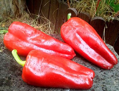 Среднеспелый (110-115 дней) сорт для открытого грунта и пленочных укрытий. Растение мощное, полураскидистое, высотой 80-90 см. Плоды пониклые, удлиненно-конусовидные, сильно глянцевые, в технической спелости зеленые, в биологической темно-красные, длиной 22 см, массой 130-150 (до 200) г, толщина стенки 4-5 мм, с нежным перечным ароматом. Урожайность 6-7 кг/м². Ценность сорта: обильное плодоношение, оригинальная форма плодов. Рекомендуется для употребления в свежем виде, консервирования и кулинарной переработки.
