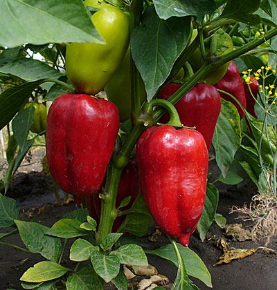 Артикул: 026810 Раннеспелый (100-110 дней) гибрид для открытого грунта и пленочных укрытий. Растение мощное, высотой 70-75 см. Плоды крупные, конусовидные, слаборебристые, в технической спелости темно-зеленые, в биологической красные, длиной 12-15 см, массой 160-200 г. Толщина стенки 7-9 мм.