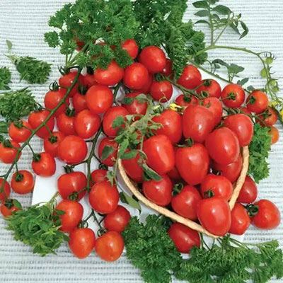 Артикул: 128950 Полудетерминантный гибрид (высотой до 1,2-1,5 м) раннего созревания с каскадными декоративными кистями из 18-30 томатов черри уникальной формы. Красно-оранжевые плоды массой 20-30 г в форме клубничек или сердечек не встретишь в супермаркете. Привлекательные и аппетитные помидорки…