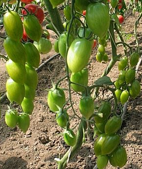 Раннеспелый (95-105 дней) гибрид. Растение высокорослое, индетерминантного типа, высотой 2-2,5 м. В кисти формирует 12-16 плодов. Плоды выравненные, сливовидные, в зрелом виде зеленого цвета, массой 30-40 г, очень сочного вкуса. Ценность гибрида: устойчивость к заболеваниям, обильное плодоношение, отлично завязывает плоды при неблагоприятных условиях и пониженной температуре, необычная окраска зрелого плода. Рекомендуется для употребления в свежем виде, консервирования и заморозки.