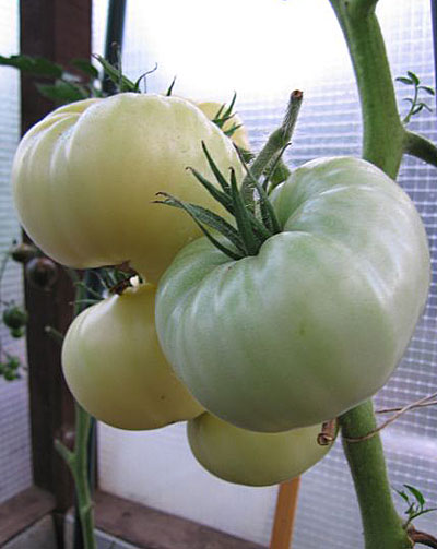 Позднеспелый (118-122 дня) сорт салатного назначения для теплиц и пленочных укрытий. Растение индетерминантное, высотой 1,5-1,7 м. Требует формирования и подвязки. Плоды округлые и плоскоокруглые, желтовато-кремовые, массой 100-120 г, отличного сочного и сладкого вкуса. Ценность сорта: устойчивость к основным заболеваниям, плодоношение до поздней осени, высокие вкусовые качества. Используется в диетическом питании для больных с аллергическими заболеваниями. Рекомендуется для употребления в свежем виде и приготовления соков.