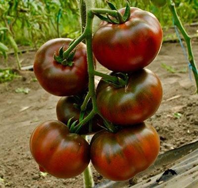 Среднеспелый (105-110 дней) сорт для теплиц и пленочных укрытий. Растение индетерминантное, среднеоблиственное, может быть сформировано в один или два стебля. Высота растения до 2 м. В кисти до 7 плодов. Плоды округлые, слаборебристые, глянцевые, массой 120-200 г. Во время созревания томаты из темно-зеленых, превращаются в шоколадные. Мякоть красно-коричневая, сочная, вкус сладкий. Урожайность составляет 7,5-8 кг/м2. Ценность сорта: устойчивость к вирусу табачной мозаики, отличный вкус, плоды — кладезь витаминов и антиоксидантов. Их употребляют свежими, делают соусы, пюре, соки.