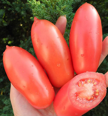Среднеранний (105-115 дней) сорт для парников и теплиц. Растение индетерминантное, высотой 1,6-1,8 м. Требует пасынкования и подвязки. Плоды удлиненные, ярко-розовые, массой 80-100 (до 120) г, очень плотные, вкусные. Ценность сорта: дружная урожайность, высокое содержание сухих веществ, транспортабельность. Рекомендуется для употребления в свежем виде, отлично подходит для цельноплодного консервирования, так как не растрескивается при обработке высокими температурами.