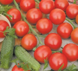 Артикул: 119110 Среднеспелый (100-105 дней) гибрид для защищенного грунта. Растение индетерминантное, мощное, 1,8-2 м высотой, требует подвязки и формирования. Плоды округлые, ярко-красные, массой 30-40 г, плотные, сладкие, не растрескиваются, собраны в прямые красивые кисти по 10-12 штук.